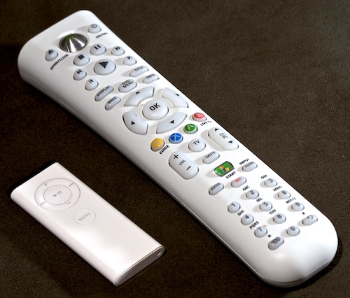These two remotes, by Apple (left, Apple TV) and Microsoft (right, Xbox 360), do approximately the same things with a few exceptions: