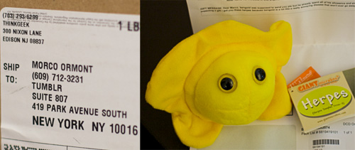I got a gift this morning: the gift of herpes! The packing label gave it away: this was from #tumblrs.