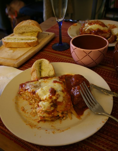 Dinner! (thanks Tiff for slaving over the stove forever to make the sauce (and everything else (more parentheses)))