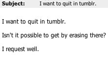 I am against comments on Tumblr. Why? Because Tumblr is a site for tumblelogs. The tumblelog is a beautifully simple medium. One of the wonders of the simplicity is the lack of a commenting system. […] Why would you throw all kinds of extra crap onto a medium that exists for it’s simplicity? Wordpress is free. Textpattern is free. Symphony is free. Livejournal is free. Blogger is free. There are so many other platforms to blog with. Why duct tape comments onto a tumblelog?