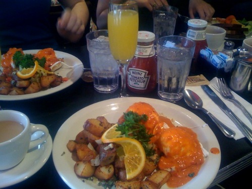 That’s a red-pepper eggs benedict with coffee and a mimosa for $12.50. Gotta love their weekend brunch specials. (brunch is Sat-Sun, 10am-5pm, and 7A is on the corner of 7th… and A)
