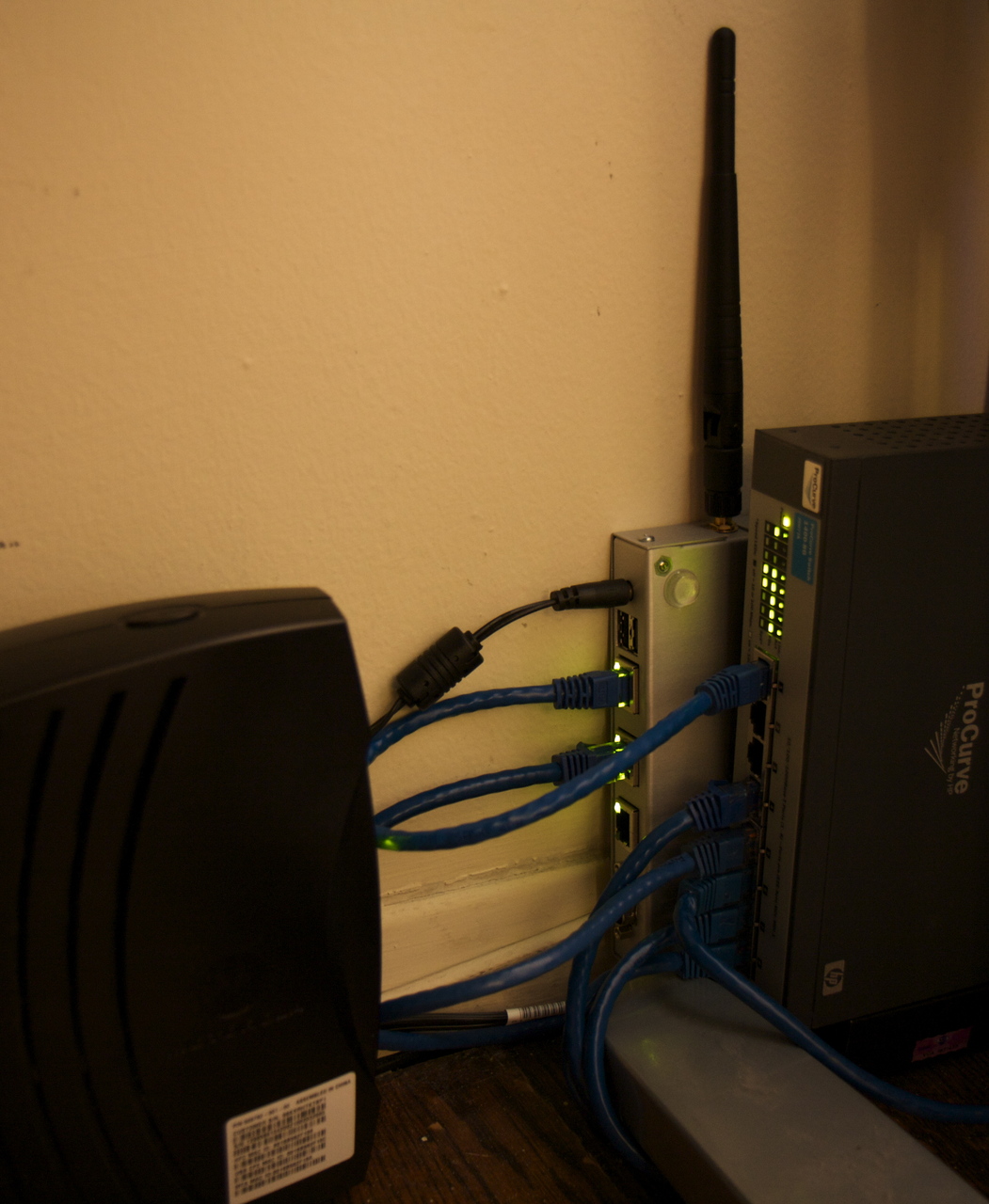 For every cable you have, ziptie the excess at a point relatively close to the end of the cable that’s most out-of-the-way. This makes the biggest difference, since most cables are much longer than you need them to be. (Bonus: For cables that you can replace cheaply and come in a variety of lengths, such as network cables, just buy new ones to be the exact length you need and no more.)