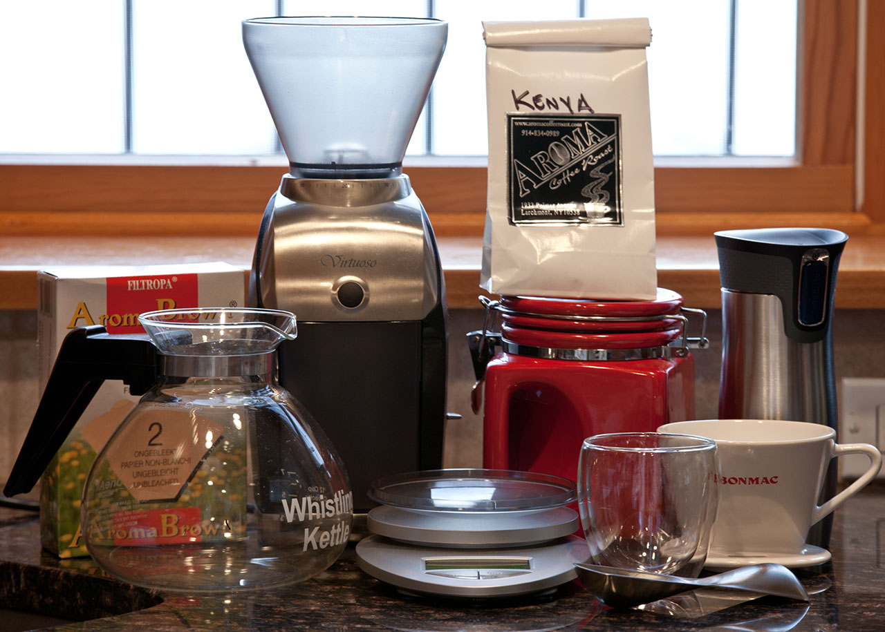 I own a lot of ways to make coffee, but I’ve settled into a pattern of using primarily these for home preparation.