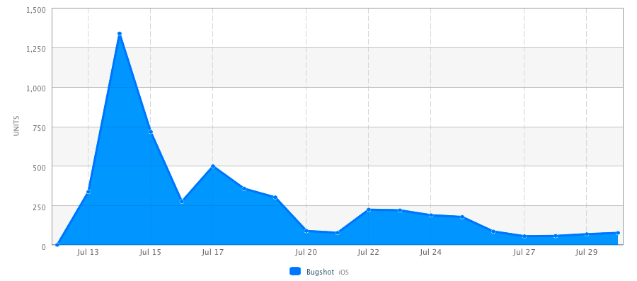 You can see the sales bump on July 22 when I invested another few days into it, polishing it more and adding two major features (Blur and “Open In…”). But you can also see that the bump was small and temporary, and further investment in any major features is probably not a responsible use of my time.