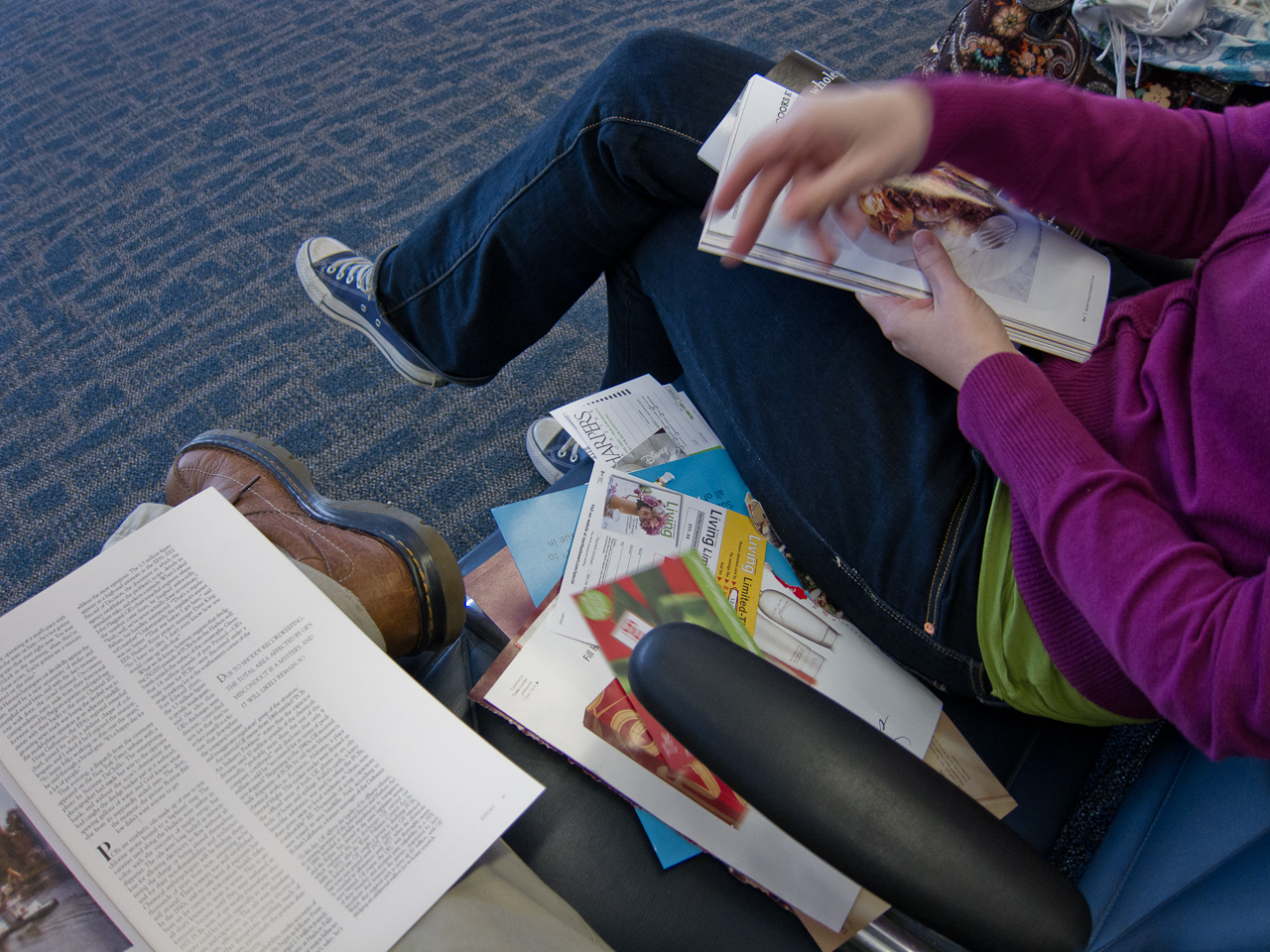 Tiff and I have completed the airport ritual of aggressively removing all subscription cards, blow-ins, thick bound-in ads, ad jackets, and other nonsense before reading the magazines we’ve purchased.