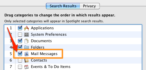 * I had unchecked it because mail messages always cluttered up the results when I was simply trying to launch an app or find a document.