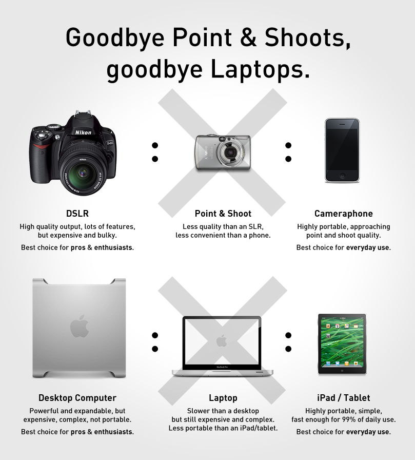 But one day, pretty soon, you’ll realize that you haven’t used your laptop in days. That you tend to grab your iPad first whenever you need to visit a website or answer email. That your laptop never leaves your desk anymore.