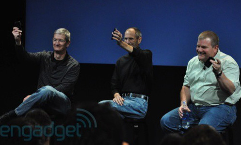 All three executives held up their bare, caseless iPhones. None of them use cases, proving Gruber’s presumably intended point: that fixing the antenna flaw with a case isn’t a very good solution for people like us (and him, and them) who don’t like using cases.
